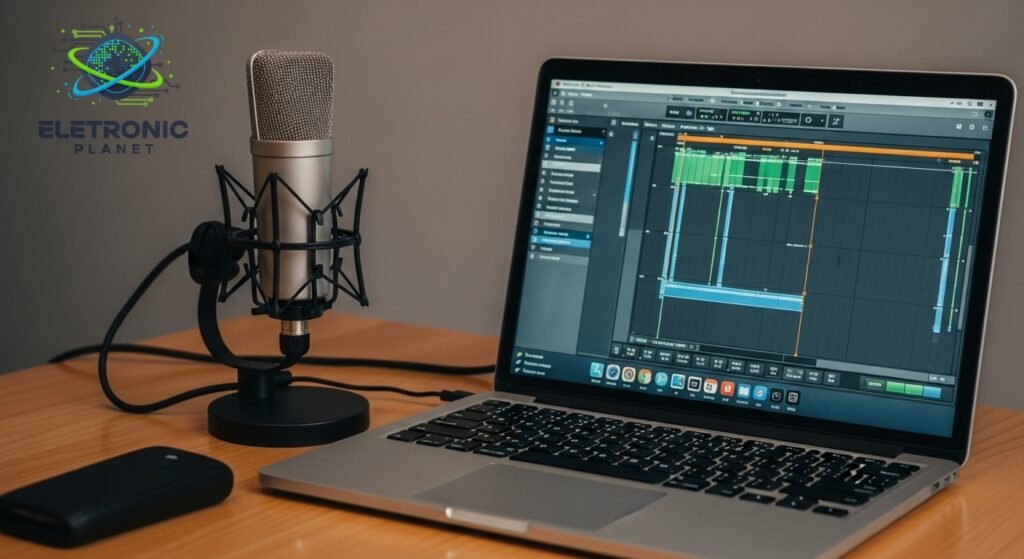 • Software de Edição: Programas de edição de áudio permitem limpar ruídos, aplicar equalização e melhorar o resultado final.