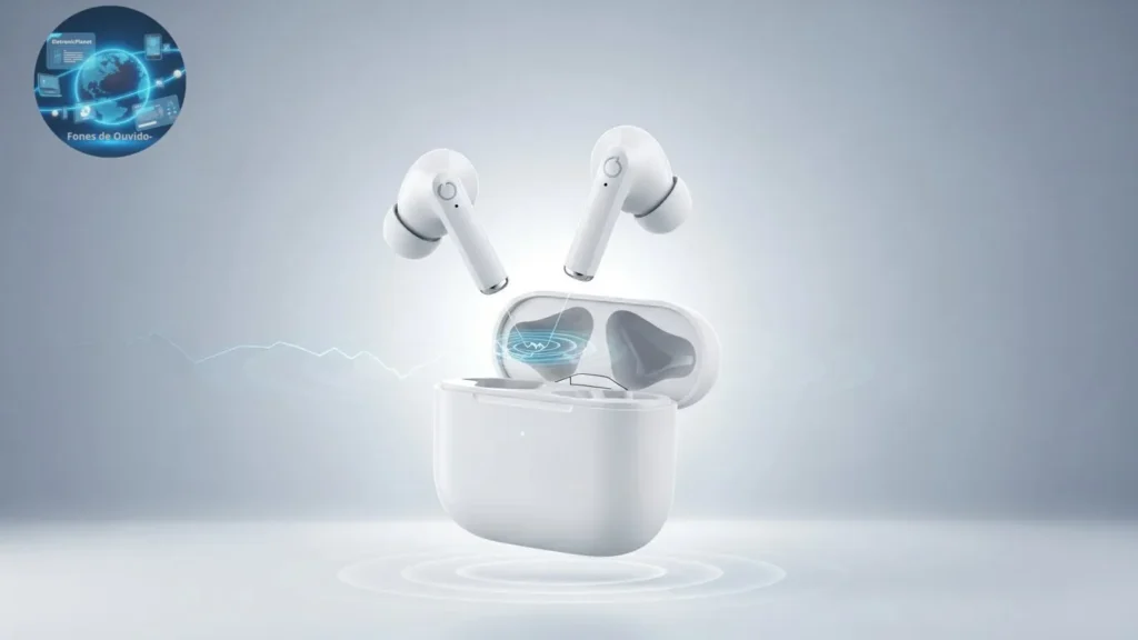 • Sincronização de áudio: Para que a experiência seja contínua, os fones sincronizam a transmissão de áudio, reduzindo a latência e evitando que o som se desfaça ou atrase.