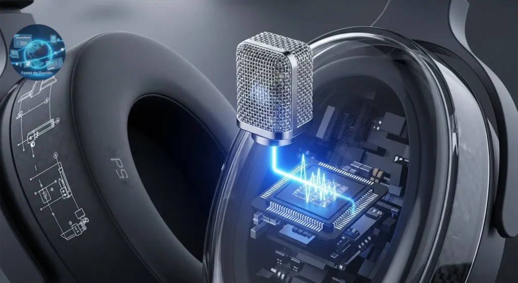 • Múltiplos Microfones e Sensores: O uso de múltiplos microfones, tanto para captação externa quanto interna, permite uma análise espacial do som, melhorando o cancelamento em diferentes direções.