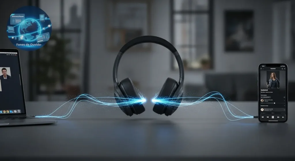 O recurso Multiponto (ou Multiconexão) em fones de ouvido Bluetooth é uma funcionalidade avançada que permite que seus fones se conectem a dois ou mais aparelhos simultaneamente. Diferente do emparelhamento Bluetooth padrão, onde você precisa desconectar e reconectar manualmente seus fones para mudar de um dispositivo para outro, o Multiponto gerencia essa troca automaticamente ou com mínima intervenção.